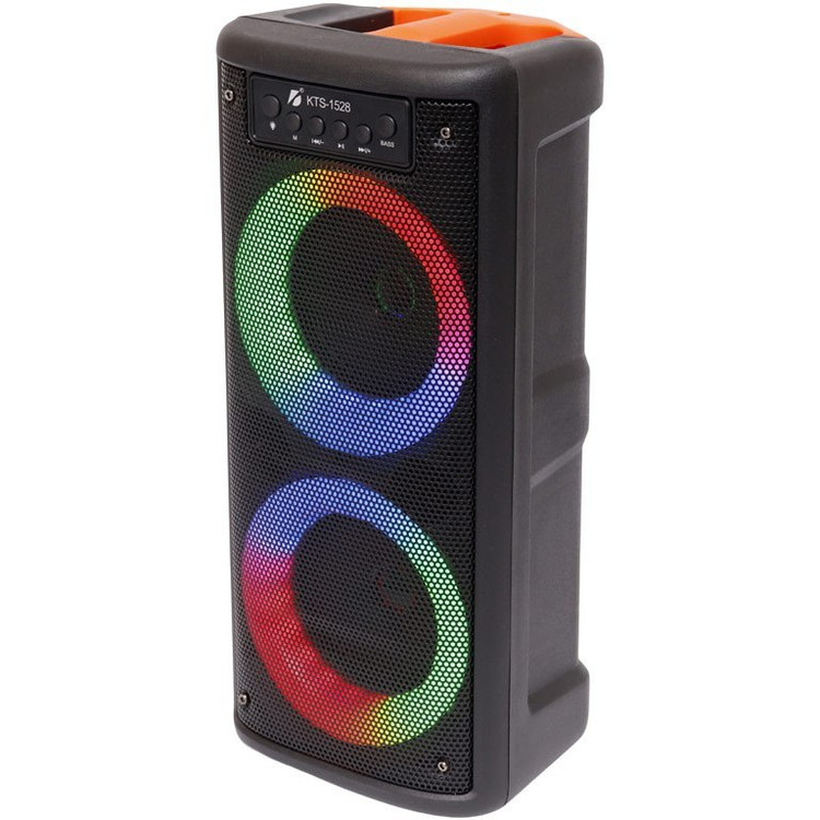 اسپیکر بلوتوثی قابل حمل KTS-1528 دارای طراحی زیبا و کیفیت ساخت بالا می باشد. این اسپیکر دارای وزن کم و با قابلیت حمل و نقل بسیار آسان طراحی شده است. این مدل از اسپیکر قابل حمل مجهز به سیستم بلوتوث ، قابلیت اتصال فلش USB تا 32 گیگ، ورودی کارت حافظه و همچنین دارای ورودی اتصال میکروفون بلندگو می باشد. سیستم وایرلس این بلوتوث تا فاصله 10 متر را ساپورت می کند. این اسپیکر دارای رقص نور زیباست که می توانید در 4 حالت مختلف آن راتغییر دهید. طول این اسپیکر همراه 36.5 و عرض آن 16 سانتی متر می باشد و دارای دسته برای حمل و نقل آسان می باشد که قابلیت استفاده به عنوان هولدر موبایل را هم دارد. از دیگر مزایای این دستگاه می توان به داشتن 2 عدد اسپیکر داخلی پر قدرت 4 اینچی ، دکمه تنظیم باس، باطری داخلی با توان 2400 میلی آمپر اشاره کرد. مدت زمان شارژ این اسپیکر 4 ساعت و مدت زمان استفاده 1 تا 2 ساعت (بسته به میزان بلندی صدا) می باشد. این دستگاه هنگام اتصال کابل شارژ نیز قابل استفاده است