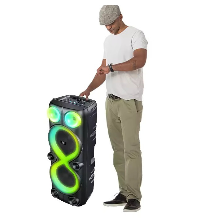 اسپیکر قابل حمل zqs 8238یک اسپیکر جمع و جور ولی با صدایی فوق العاده بلند و با کیفیت است که می تواند صدایی با قدرت 4000وات پمپو را تولید کند.این اسپیکر از بلوتوث پشتیبانی کرده و دارای درگاه فلش ، مموری و ای یو ایکس می باشد.این اسپیکر دارای پارتی لایت بسیار زیبا و حساس به صدا است که می توانید آن را به چند حالت مختلف تغییر دهید.داخل باکس این اسپیکر دوعدد میکروفن قرار دارد که می توانید توسط آن لحظات مفرحی رو به خوانندگی و شنیدن موسیقی بپردازید.