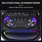 با اسپیکر و پارتی باکس قدرتمند و قابل حمل zqs 10220 می توانید مهمانی را با صدای قدرتمند و نمایش نور پویا و تمام عیار شروع کنید. این دستگاه ، با صدای قدرتمند و باس عمیق همراه با ولوم اکو و دیلی ، برای هر مهمانی، محتوای جدیدی به ارمغان می آورد. همچنین مجموعه ای از فن آوری های پیشرفته مانند بلوتوث را در خود دارد. استفاده از میکروفون اسپیکر جهت آواز. پشتیبانی USB، AUX، رادیو ، HD Sounds ، تکنولوژی میک پری و... از جذابیت های دیگر این اسپیکر می باشد.
