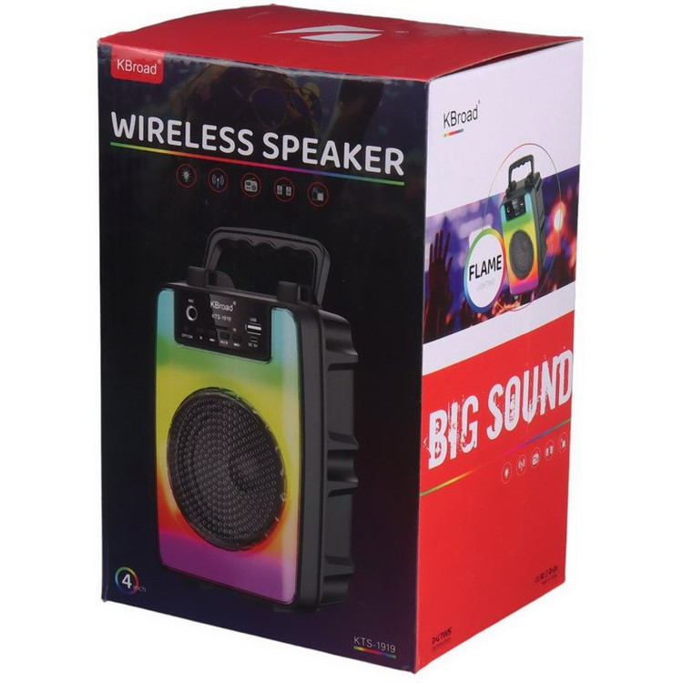 KTS -1919 یک اسپیکر بلوتوثی قابل حمل و سبک جذاب همراه با رقص نور زیبا قدرت پرتاب صدای ۴ اینچی با بیس مناسب می باشد دارای محل قرار گیری دست جهت حمل راحت اسپیکر همچنین سطح نگهدارنده تلفن های همراه آن را به یک دستیار صوتی کوچک اما پرکاربرد برای استفاده های روزمره تلقی میگردد. مناسب برای دوره همی ها و مهمانی های شما اسپیکر KTS-1919 دارای رادیو FM داخلی است که به شما امکان میدهد ایستگاههای رادیویی مورد علاقهتان را با کیفیت بالا بشنوید.باتری این اسپیکر با ظرفیت بالا، امکان استفاده طولانیمدت را بدون نیاز به شارژ مکرر فراهم میکند.چراغهای LED رنگی روی بدنه اسپیکر، جلوهای زیبا به آن میبخشند و هنگام پخش موسیقی، فضایی دلنشین ایجاد میکنند.اسپیکر KTS-1919 با بدنهای مستحکم و طراحی مدرن، گزینهای مناسب برای استفاده در خانه، محل کار یا طبیعت است. دستهی قابلحمل و وزن مناسب آن، جابجایی آسان را فراهم میکند.