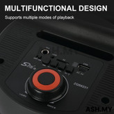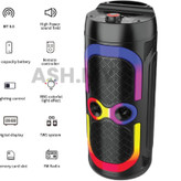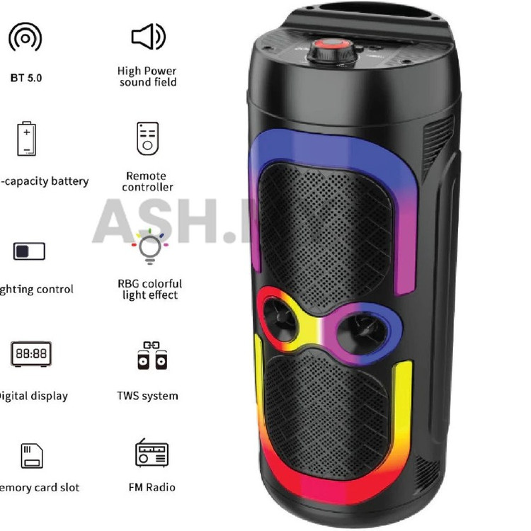 اتصالات متنوع: امکان اتصال بی سیم از طریق بلوتوث و با سیم توسط رابط جک 3٫5 میلی متری صدا. ورودی میکروفون: مجهز به یک ورودی میکروفون برای استفاده در مراسم ها و جلسات. نورپردازی RGB: دارای نورپردازی RGB جهت ایجاد جلوه بصری زیبا. توان خروجی: مجهز به دو درایو 6 اینچی با توان خروجی کلی 30 وات (15W×2).پاسخ فرکانسی: محدوده پاسخ فرکانسی برابر با 45 هرتز الی 18 کیلوهرتز و نسبت سیگنال به نویز معادل با 50 دسی بل. فناوری TWS: پشتیبانی از فناوری TWS به منظور اتصال دو یا چند اسپیکر هم مدل به یک دستگاه و پخش به صورت همزمان.امکان اتصال بی سیم توسط بلوتوث و با سیم از طریق جک 3.5 میلی متری صدا برخورداری از یک عدد جایگاه اتصال میکروفون و کلید های فیزیکی به منظور مدیریت پخش و...طراحی شده در سایز و وزن مطلوب، مناسب برای استفاده در جشن ها و مهمانی ها، دارای استند موبایل تامین انرژی از طریق باتری داخلی با ظرفیت 3000 میلی آمپر با امکان شارژ مجدد توسط درگاه تایپ سی قابلیت پخش فایل های ذخیره شده توسط فلش مموری و TF Card از طریق درگاه USB و شیار کارت حافظه بدنه ساخته شده از جنس پلاستیک با کیفیت، دارای نورپردازی RGB جهت ایجاد جلوه بصری زیبا در تاریکی بهره مندی از دستگیره تعبیه شده به منظور حمل آسان، دارای اقلام هماراه نظیر میکروفون، ریموت کنترل و کابل شارژ مجهز به دو عدد درایو اسپیکر 6.5 اینچی با توان خروجی 20 وات، فرکانس 45 هرتز الی 18 کیلوهرتز و حساس