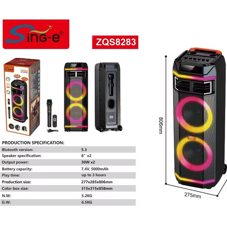 اسپیکر ZQS مدل 8283 با امکاناتی همچون توان خروجی قدرتمند، پشتیبانی از میکروفون، اتصال بیسیم با بلوتوث نسخه 5.0، کنترل از راه دور، روشنایی LED RGB و باتری با ظرفیت بالا، انتخابی مناسب برای افرادی است که به دنبال یک اسپیکر قابل حمل و چندمنظوره هستند. این اسپیکر میتواند تجربهای بینظیر از گوش دادن به موسیقی را برای شما فراهم کند.