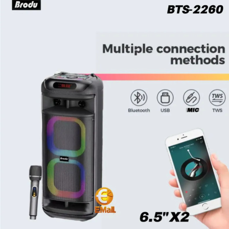 این اسپیکر از بلوتوث پشتیبانی کرده و دارای درگاه فلش ، مموری و ای یو ایکس می باشد.اسپیکر BTS 2260 دارای پارتی لایت بسیار زیبا و حساس به صدا است.