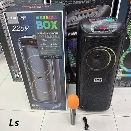 داخل باکس این اسپیکر دو عدد میکروفن وایرلس قرار دارد که می توانید توسط آن لحظات مفرحی رو به خوانندگی و شنیدن موسیقی بپردازید.