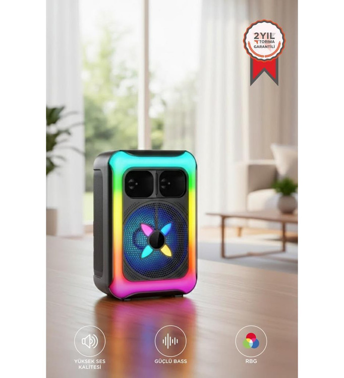 این اسپیکر دارای قابلیت پشتیبانی از رادیو FM بوده و مجهز به ورودی میکروفون است که برای استفاده در مراسمهای زنده، سخنرانیها یا اجرای موسیقی بسیار مناسب است. کنترل از راه دور (ریموت کنترل) نیز امکان مدیریت آسان صدا و تنظیمات مختلف را فراهم کرده است.